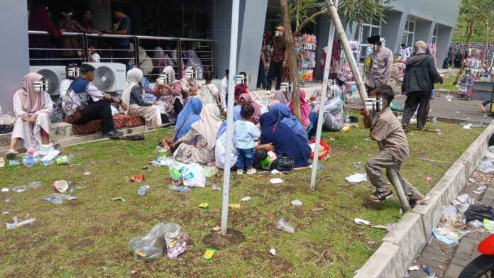 “Yang di halaman, sampahnya ke mana-mana. Ada yang sampai ke selokan, ada juga di rumput. Itu kadang kami butuh dua hari untuk membersihkannya.”