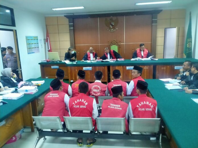 Serang, lpmsigma.com — Sidang terhadap 12 terdakwa aksi demonstrasi Agustus lalu masih berlangsung dengan agenda pemeriksaan saksi dan putusan sela. Sidang digelar di Pengadilan Negeri (PN) Serang, tepatnya di Ruang Candra, Selasa (28/04/26).