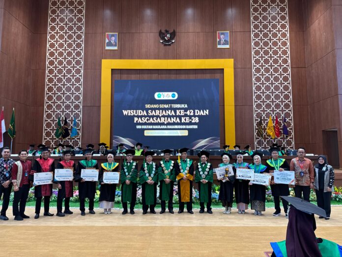 Serang, lpmsigma.com – Universitas Islam Negeri (UIN) Sultan Maulana Hasanuddin (SMH) Banten kembali menggelar wisuda dengan menetapkan delapan wisudawan terbaik dari total 750 lulusan. Jumlah tersebut terdiri atas wisuda Sarjana ke-42 dan Pascasarjana ke-28 yang berlangsung di Convention Center Hall lantai 2, Sabtu (11/04/26).
